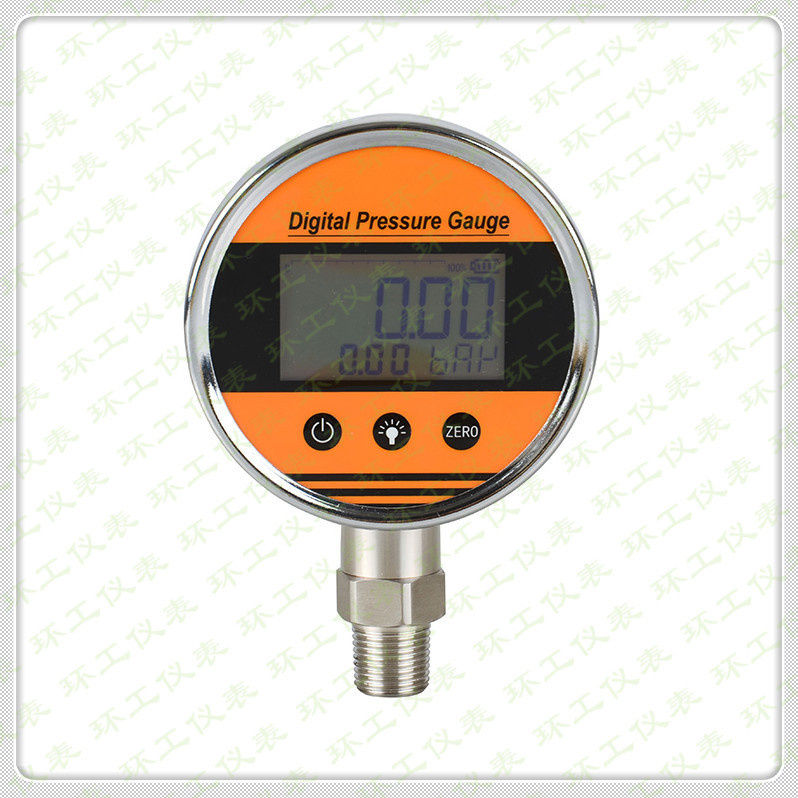 數(shù)字壓力表為全電子結(jié)構(gòu),采用電池供電,現(xiàn)場(chǎng)安裝簡(jiǎn)易。前端采用高精度壓阻式壓力芯體,經(jīng)放大器、微處理器運(yùn)算處理,由LCD顯示出實(shí)際的壓力值。
